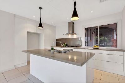 - Stunning kitchen with gas cooktop and plenty of cupboard and bench space, overlooking the light filled family room which overlooks the landscaped rear gardens with fruit trees. Plenty of the space for the kids to run and play.