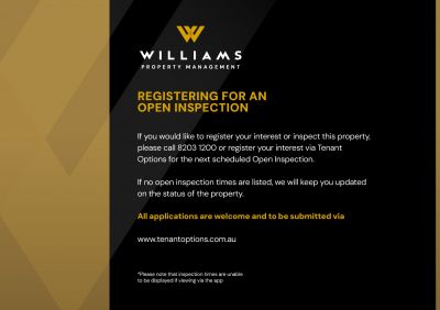 To register your interest or for any further queries please contact Rebecca Aries by emailing rebecca@williamsproperty.com.au or by calling 0477 799 544.