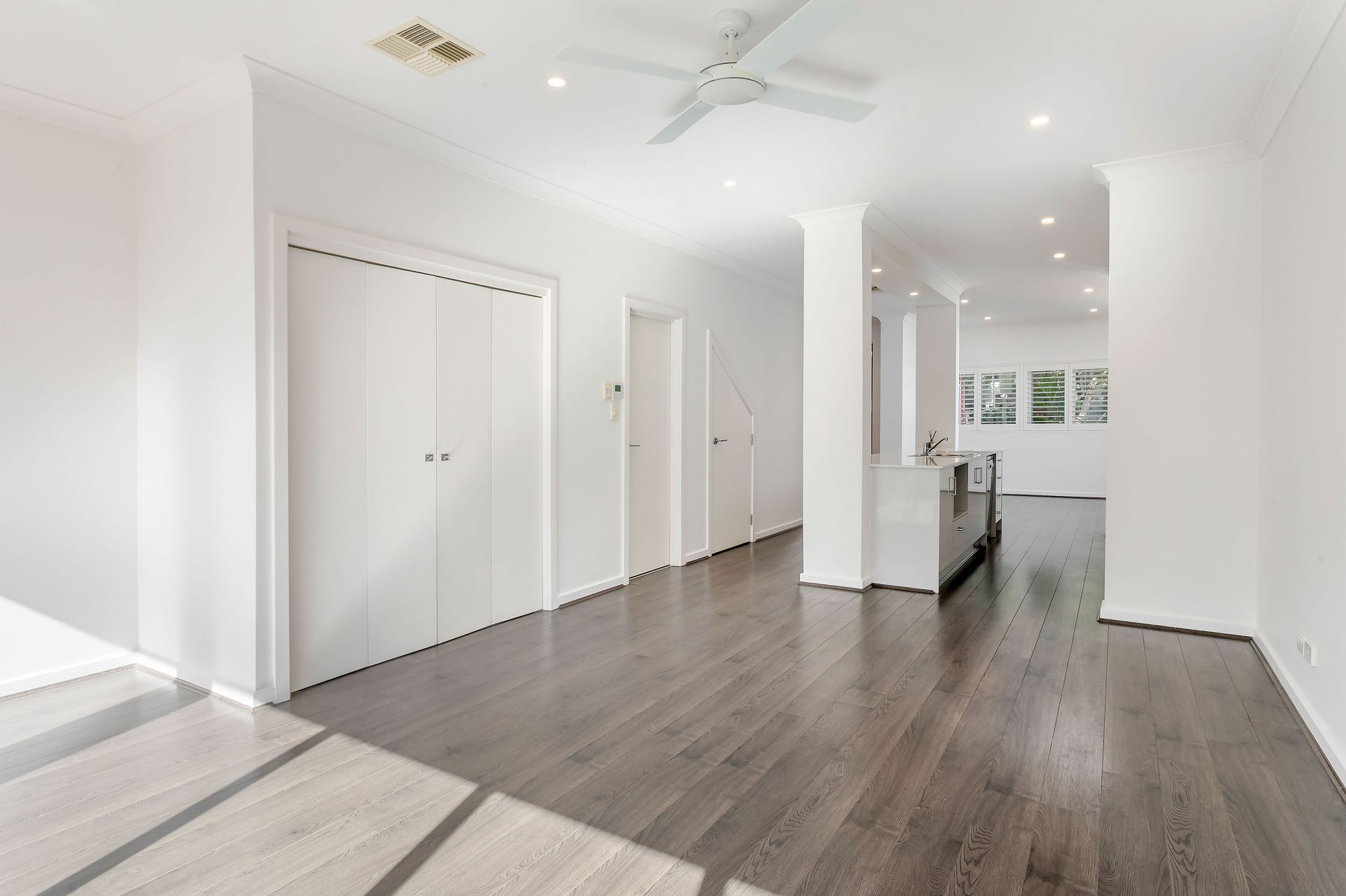 • Plantation shutters and modern roller blinds throughout