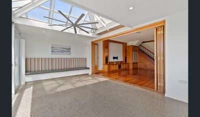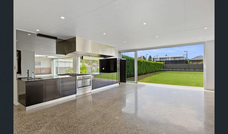 A stunning modern extension adds a huge additional living area, with bifold timber doors folding back to reveal another spectacular inside/outside entertaining area which includes a full upscale outdoor kitchen and polished concrete floors.