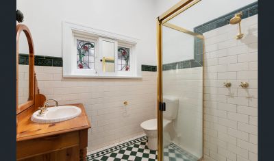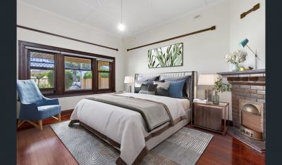 Just 300 metres to the beach and with a full-size grass tennis court, this magnificent home has been extensively renovated to showcase original features including soaring ceilings, fireplaces, polished timber floors and modern necessities.