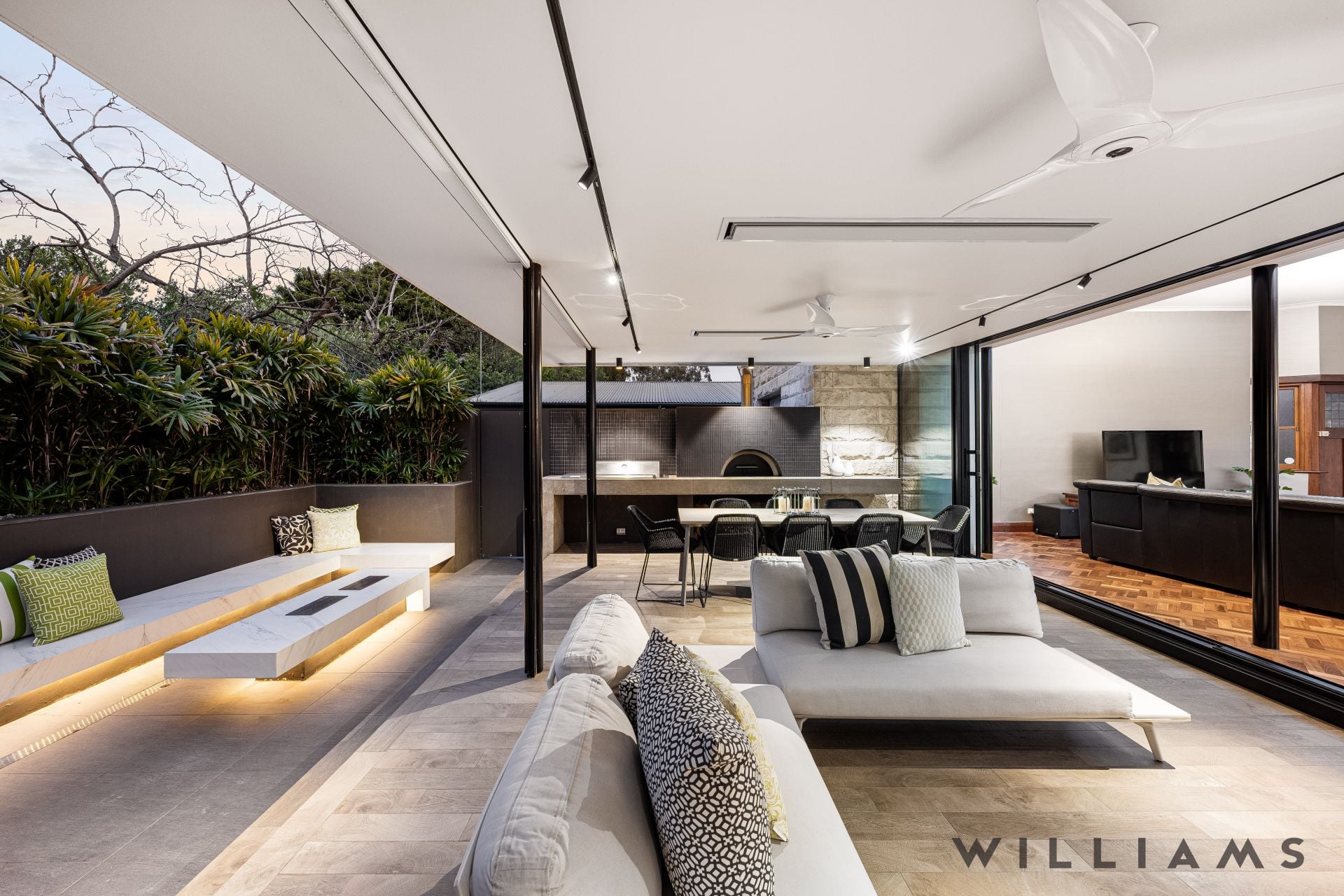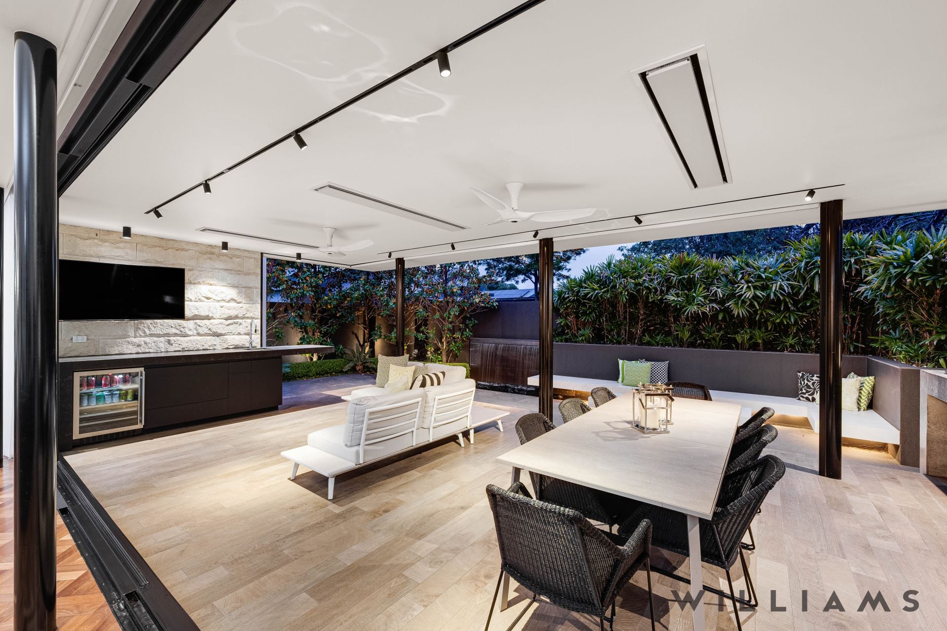 Fully enclosable outdoor room for year-round entertaining comfort