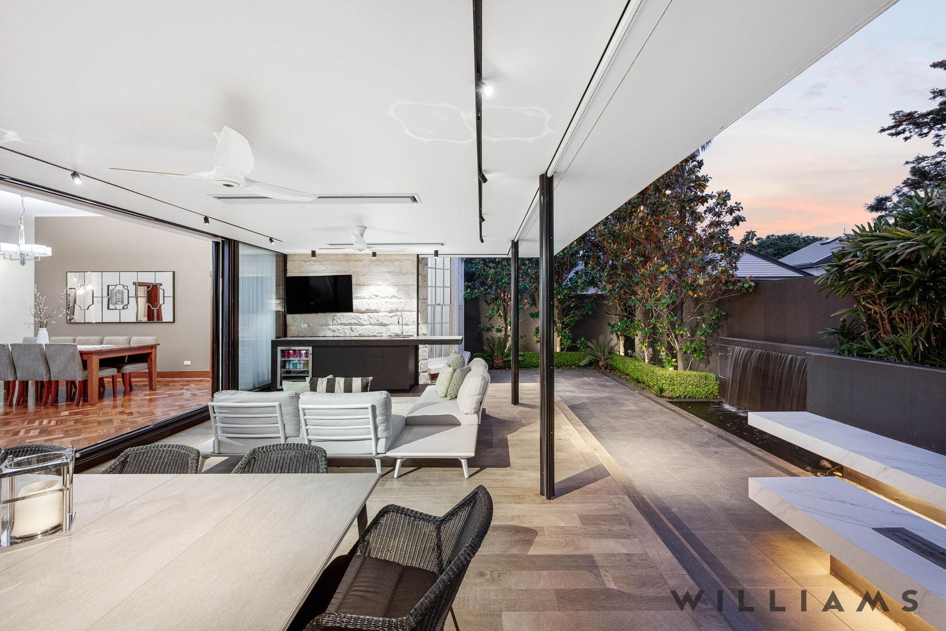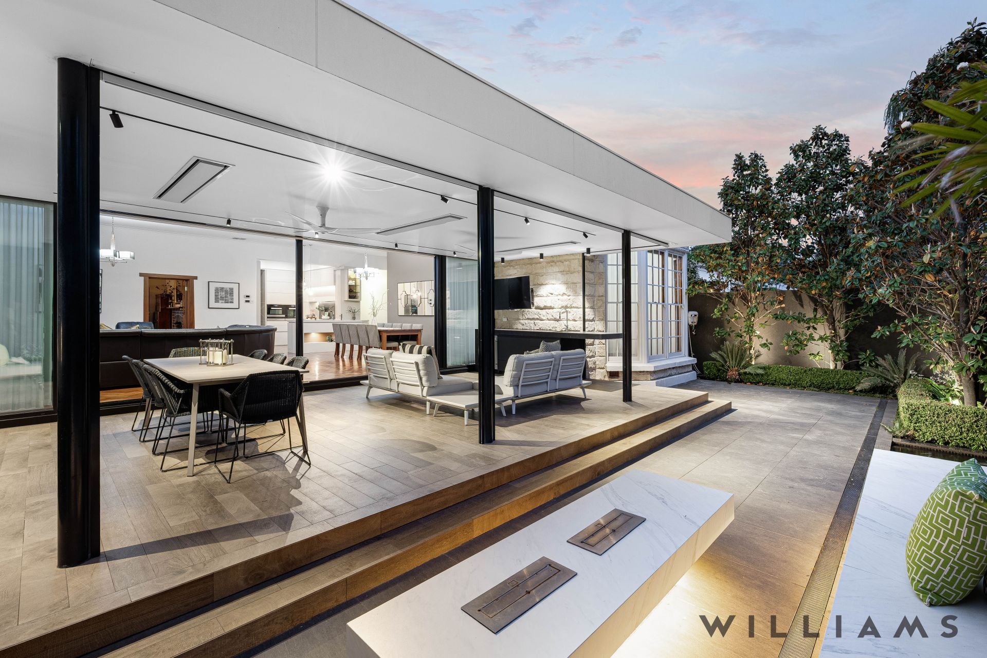 The home’s well-crafted architectural finale isn’t just the ultimate indoor-outdoor performer – it dominates as the light-filled and connected heart of the home; the adjoining character-rich formal lounge with soaring 3.3m ceilings and fireplace slips away as a refined retreat.