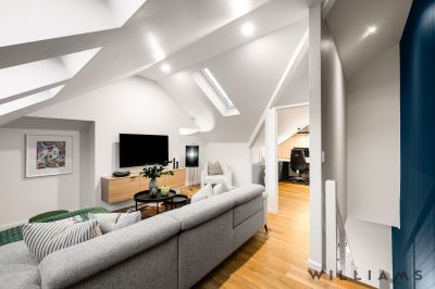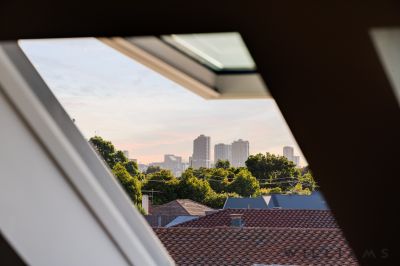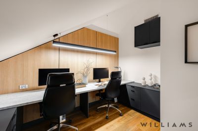 From the central living, an attic-level study and retreat are accessed via an internal staircase. Thoughtfully created to deliver an inspiring work-from-home space with timber panelling, custom cabinetry, and elevated city views, this is the perfect place to enjoy summer sunsets, New Year’s Eve fireworks, and iconic Adelaide events.