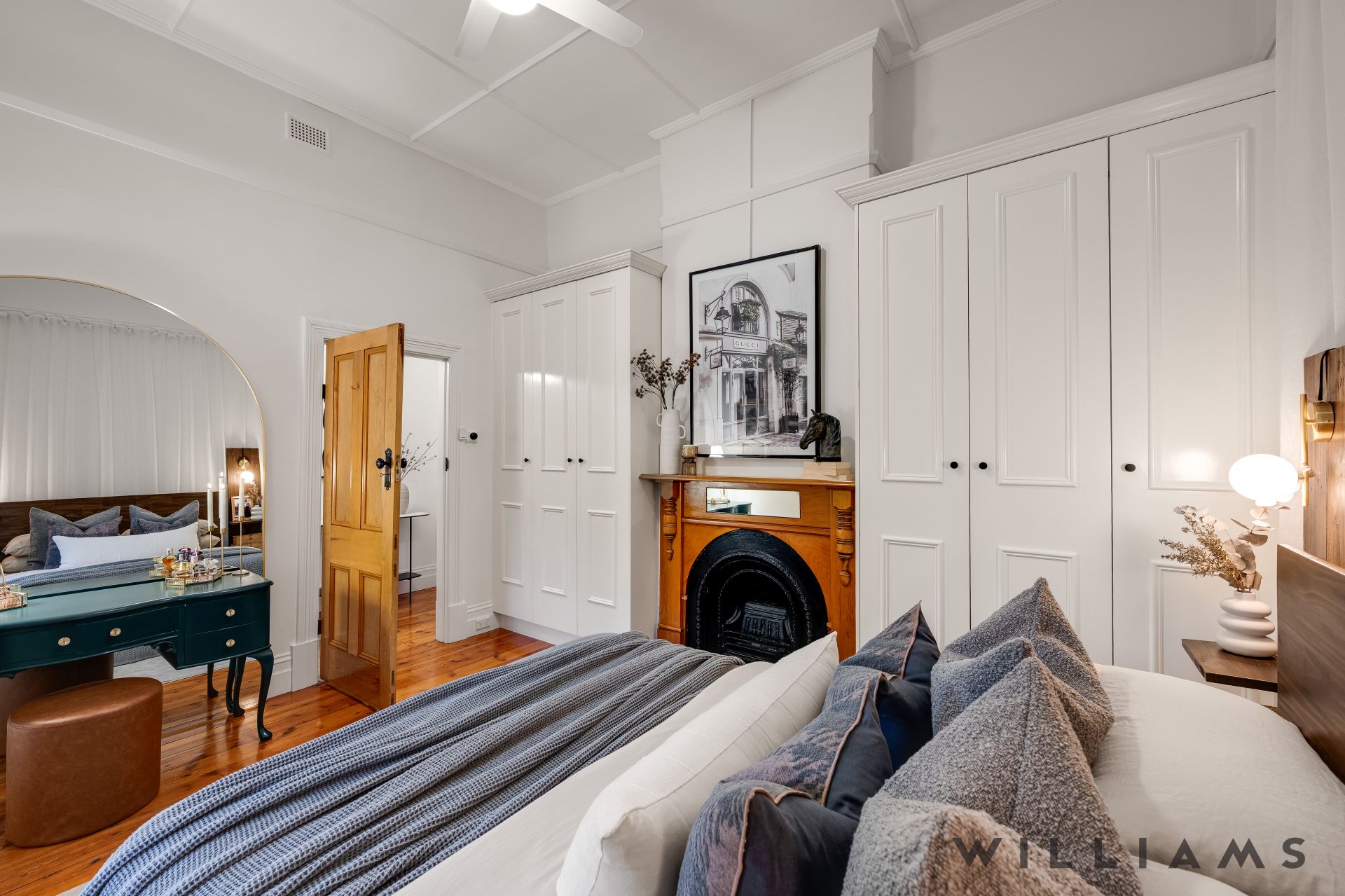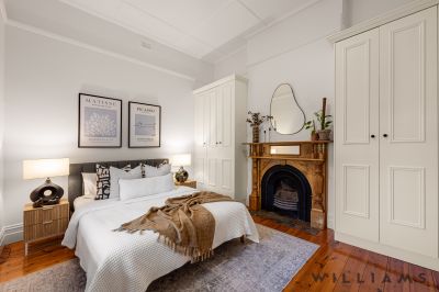Four generous bedrooms provide flexible, family-focused accommodation, including a master suite with a dual shower ensuite and a spacious walk-in robe, while two additional bedrooms feature built-in wardrobes and original fireplaces that add warmth and character. The fully tiled family bathroom includes a freestanding bathtub and walk-in shower which mirrors the refined finishes and elevated style seen throughout the home.