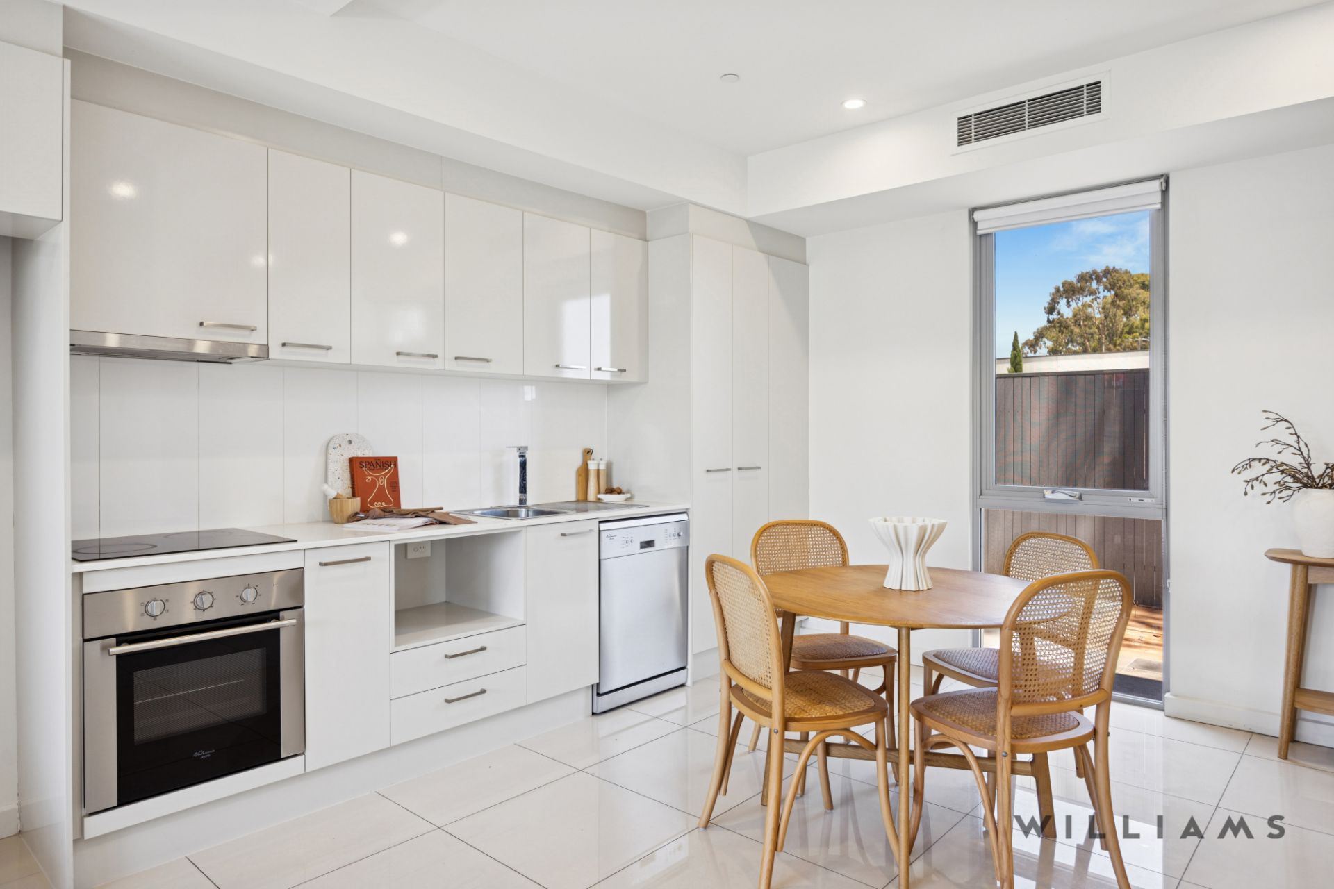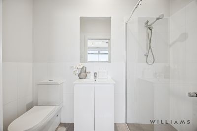 Step inside to discover a spacious open-plan layout filled with natural light, where the living and dining areas flow to a private entertainer's balcony – the perfect place to enjoy a morning coffee or evening glass of wine. The sleek kitchen is appointed with quality appliances and ample storage, making everyday living and entertaining a breeze. Completing the first floor is a discreet European-style laundry and a separate powder room, thoughtfully positioned for added convenience.