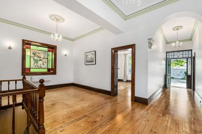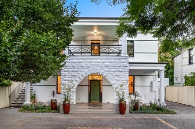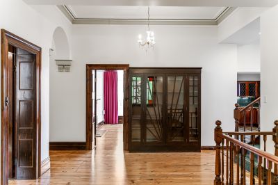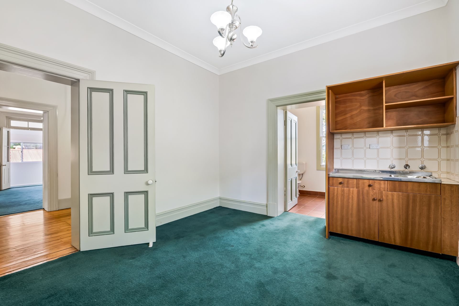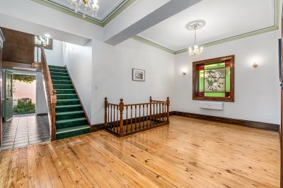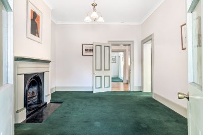 Expanded and adapted over the years, the home retains architectural details and elements throughout. Towering high ceilings, leadlight surrounding the front door, ceiling roses, polished timber floors and elegant open fireplaces. The current floor plan sprawls over 2 levels and would easily adapt to suit individual needs. Beams of natural light fill generous size rooms and accommodation throughout - five bedrooms, three bathrooms, stunning formal and informal living rooms, 2 kitchens (one upstairs and one downstairs) a cellar for wine lovers, a large upstairs balcony, and studio at the rear recently upgraded with insulation, soundproof, rendered and painted. With its own entry this is a versatile space for creativity, work from home office or a welcome retreat.
