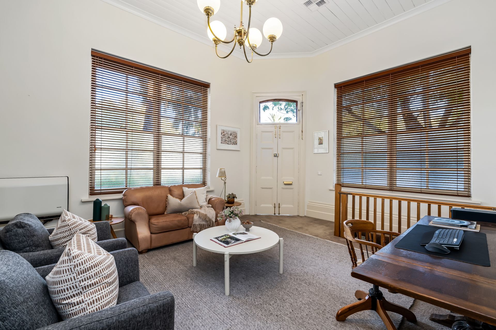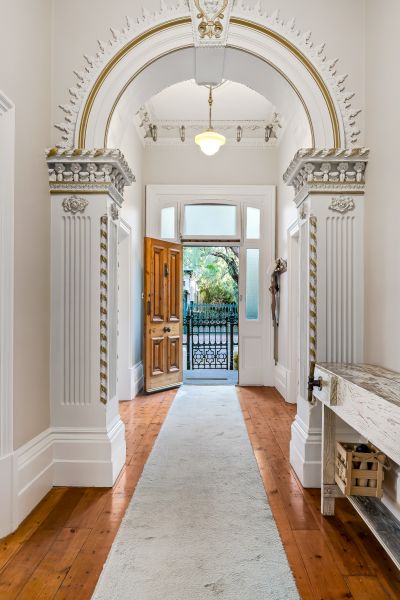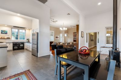 Originally built in the late 1800's to function as a hotel, with grand proportions and built to a high standard to stand the test of time. However, it was thwarted in its attempt to gain a hotel licence. From the cast iron fence and gate a gracious Mintaro slate entrance welcomes you to explore. Step inside where soaring ceilings drench the home with light. The highly ornate hallway and arch are nothing short of spectacular and are a focal point. The long hallway and timber floors lead on to deceptively spacious living rooms, dining, generous bedroom accommodation, up-to-the-minute modern bathrooms (including ensuite) and a fully equipped cooks kitchen featuring a Falcon cooker – it's sure to impress the most accomplished home master chef!