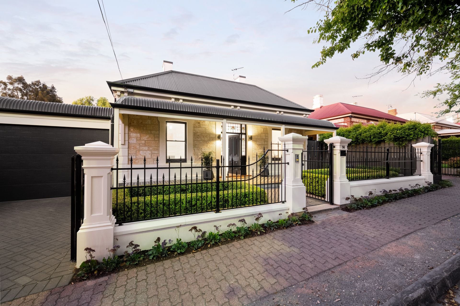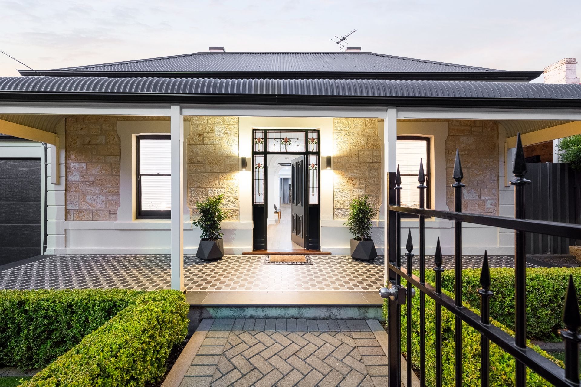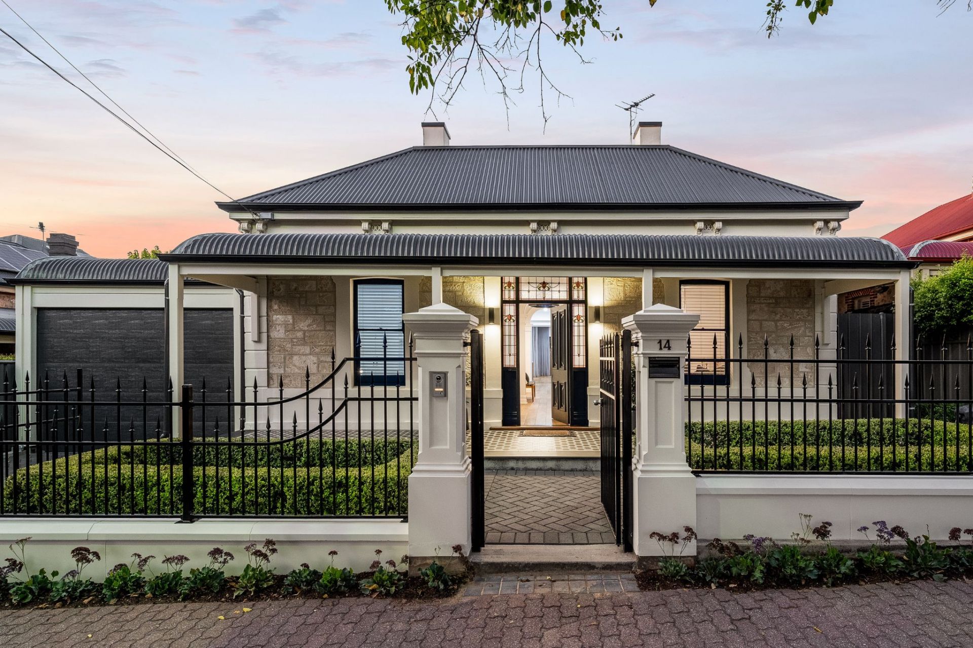 From the moment you arrive, the pristine garden and striking façade sets the tone for what awaits within. Step inside and the grandeur is immediate, soaring ceilings crown the original rooms, and magnificent dual hallway arches frames the journey throughout. Period-correct fireplaces grace each of the four principal front rooms, honouring the home's rich history, while soaring ceilings, modern leadlight accents and engineered timber floors add to the refined finishes throughout.