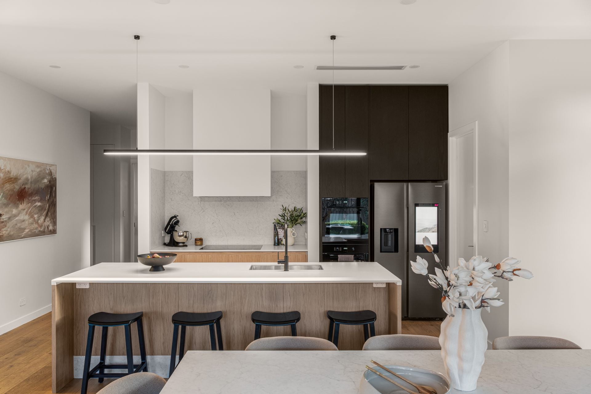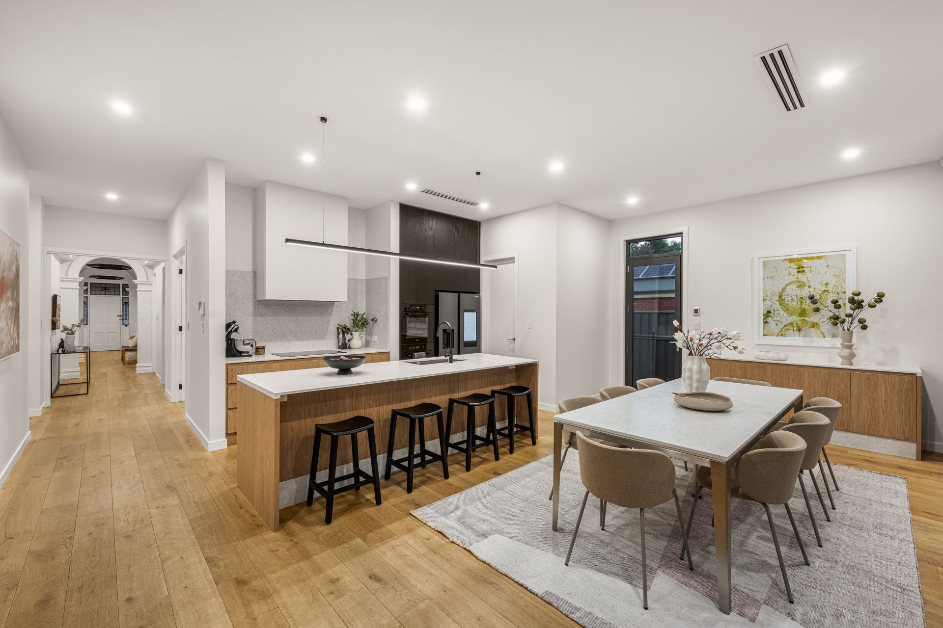 Beyond the original character, the home unfolds into a breathtaking and perfectly proportioned contemporary extension by Mavtect Designs, with bespoke interiors curated by Stefan Vignogna.