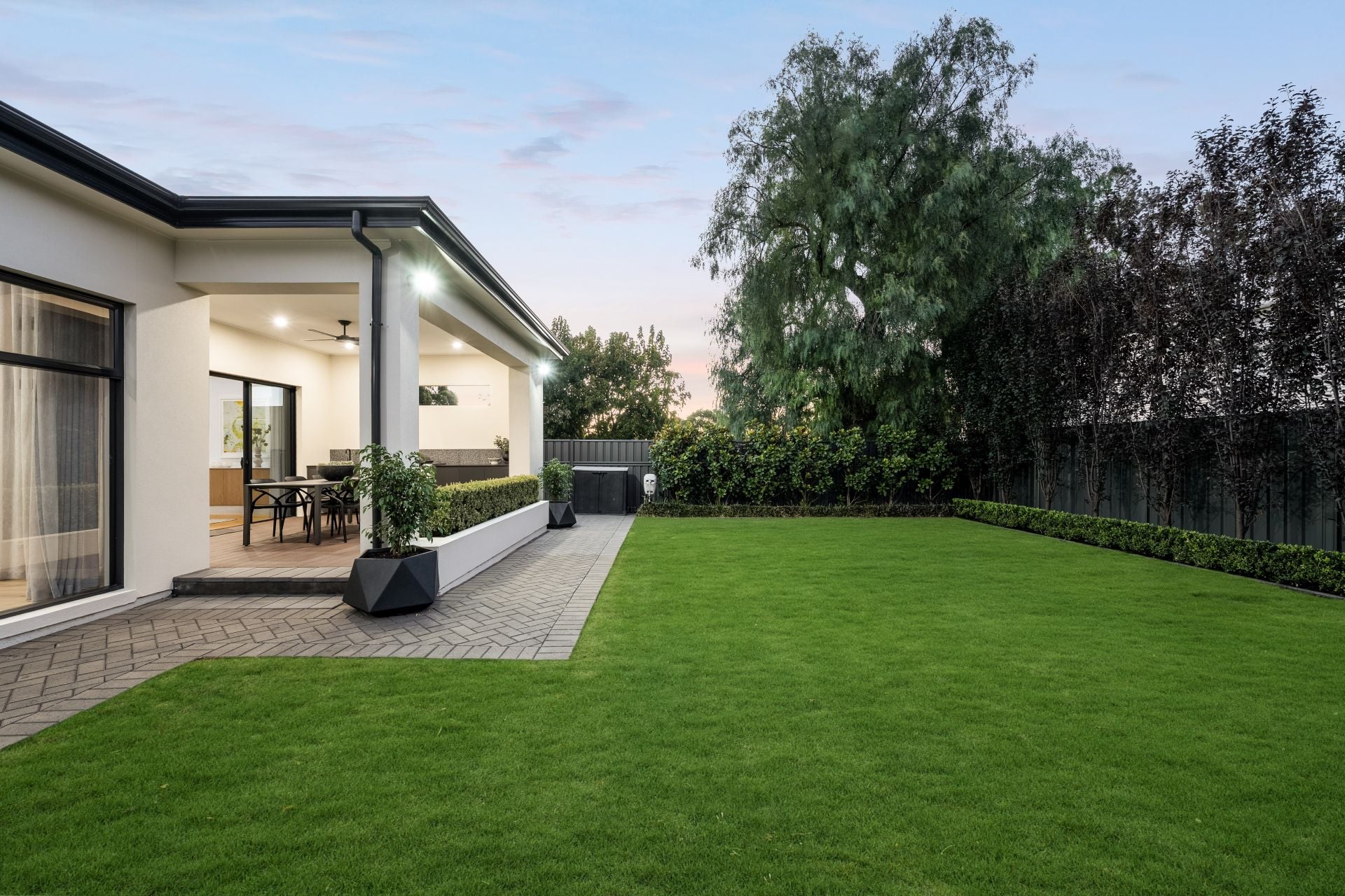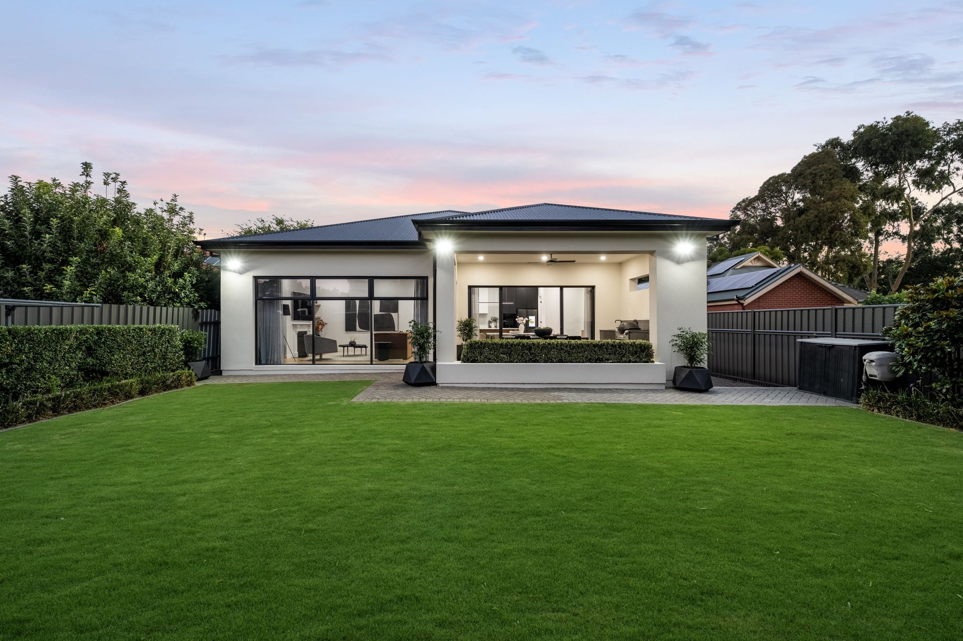 Outdoors, entertaining takes centre stage. A sanctuary of relaxation and seclusion, enjoy every day or entertain in style in the undercover alfresco with fully equipped built-in outdoor kitchen, including granite benchtop, waterproof cabinetry and mains connected Weber BBQ, surrounded by North facing fully landscaped and irrigated rear garden with wireless programming functionality.
