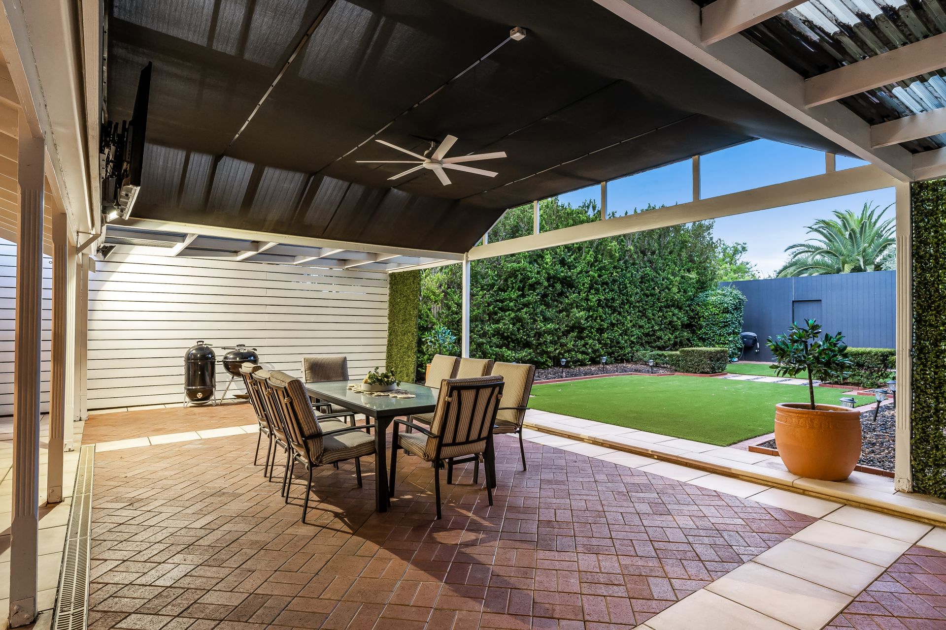 An expansive extension houses relaxed living and dining, and is large enough to accommodate a growing family. Outdoor living is just as inviting, with a covered and paved entertaining area, perfect for alfresco dining or weekend gatherings.