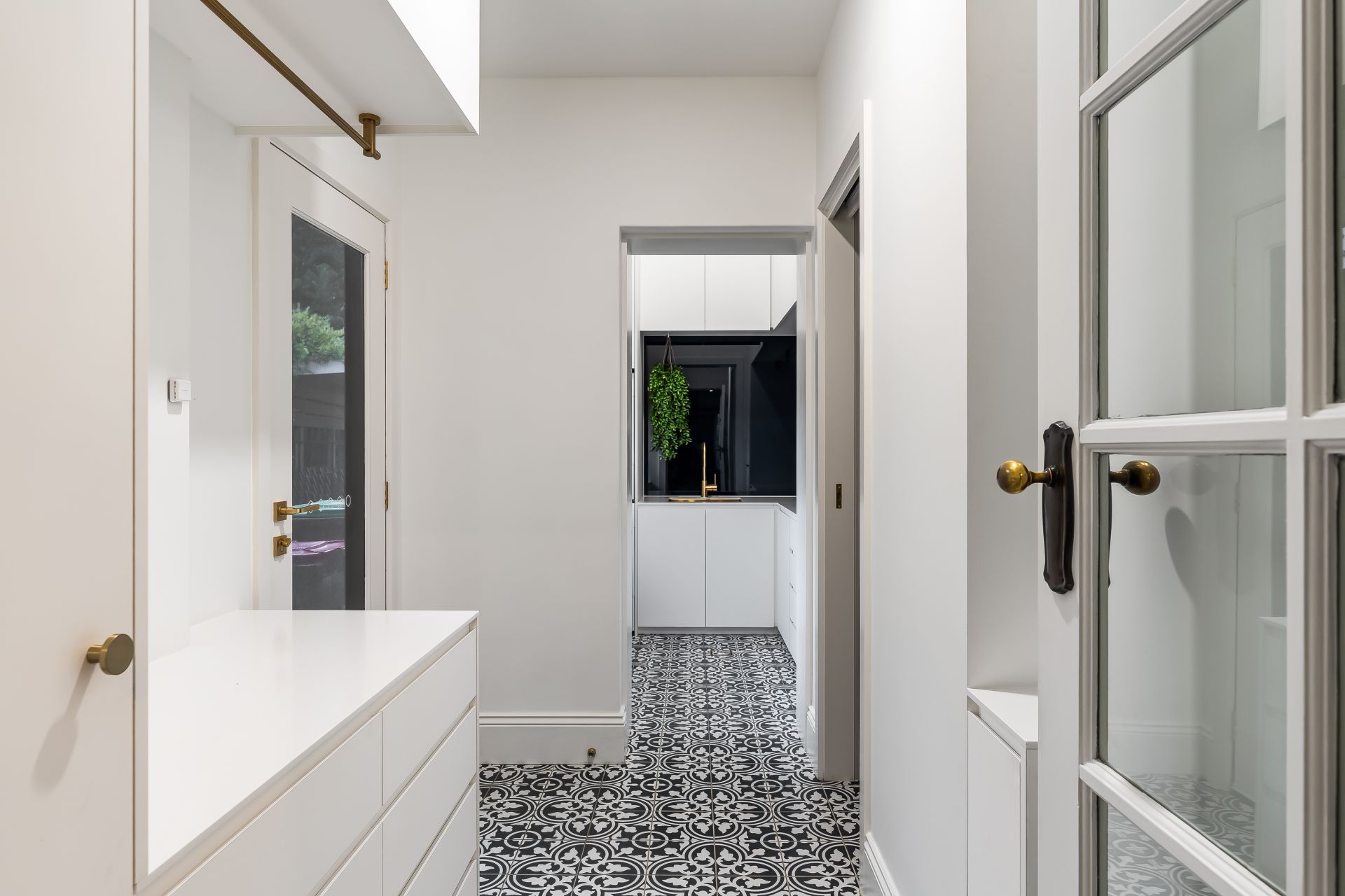 At the heart of the home, the kitchen is a showstopper that's bound to impress the most aspired and accomplished home chefs - custom designed cabinets are off-set with solid brass handles, Ambassador stone benchtops, and an extensive list of impressive appliances including Miele built in induction cooktop, pyrolytic oven, microwave and warming tray. The convenience of a Zip hydrotap, Twinboost rangehood and even a clever pop-up power point with USB in the island which also houses hidden storage ensuring appliances and everyday items are always within easy reach.